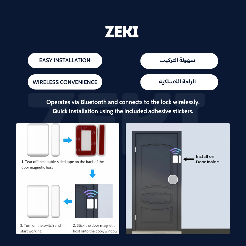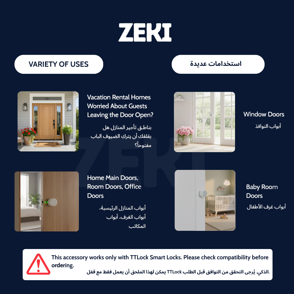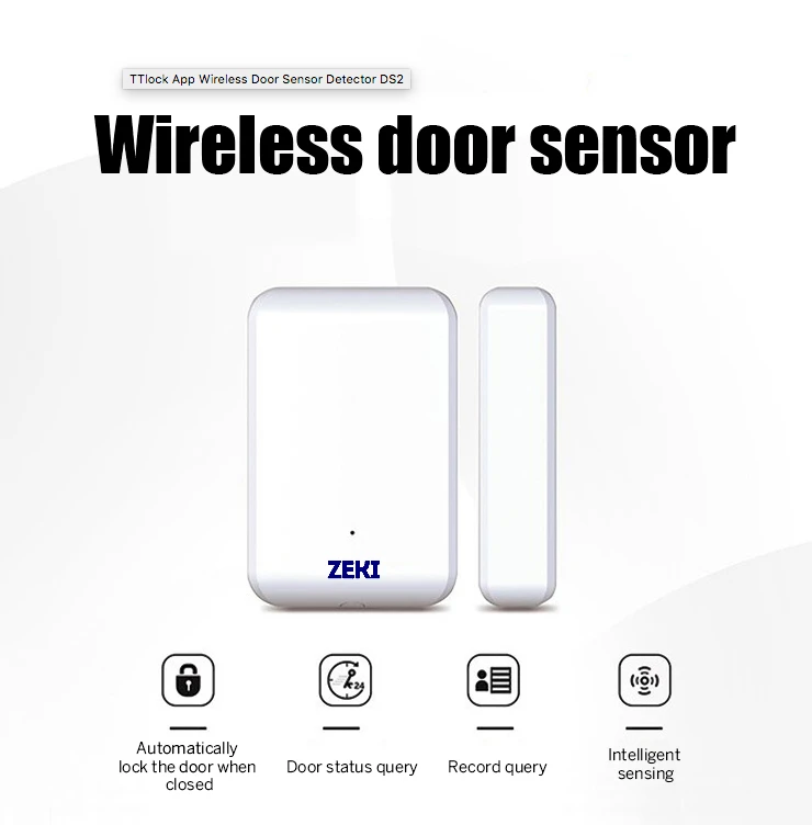 The Zeki TTLOCK Door Sensor DS2 is a compact, accurate TTLOCK door sensor that works exclusively with TTLock smart locks, providing instant open/close alerts and seamless app monitoring for enhanced door security.