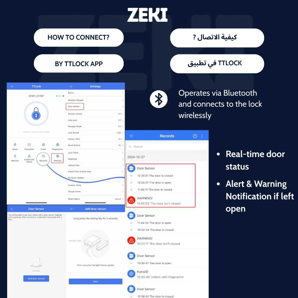 If you already use TTLock smart locks, the ZEKI TTLOCK DOOR SENSOR DS2 is the most effective way to enhance security and automation. You’ll always know whether your door is open, closed, or left ajar, with instant updates sent straight to your phone.