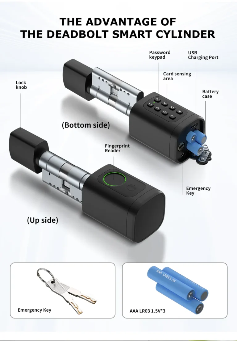 The C1 Smart Lock Cylinder offers keyless entry via fingerprint, keypad, or app. Secure, durable, easy to install, and perfect for multiple users.