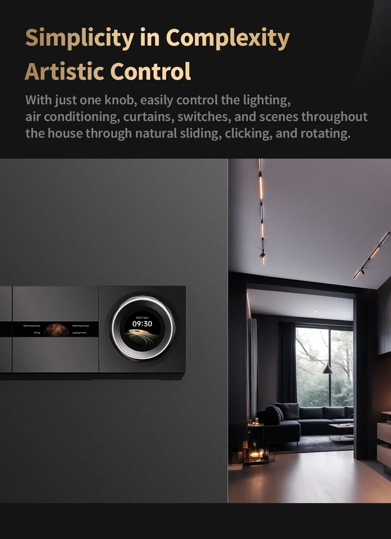 Crafted with a matte AG glass finish, sandblasted surface, and CNC precision engraving, the Aqara Touchscreen Dial V1 is built to blend into modern interiors. Its compact form and premium materials make it more than just a switch—it’s a design upgrade for your wall.