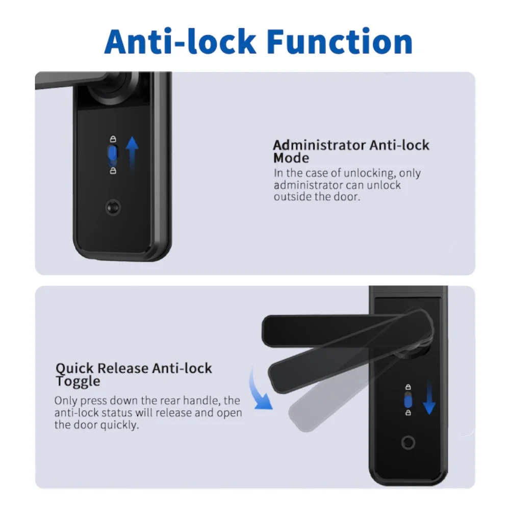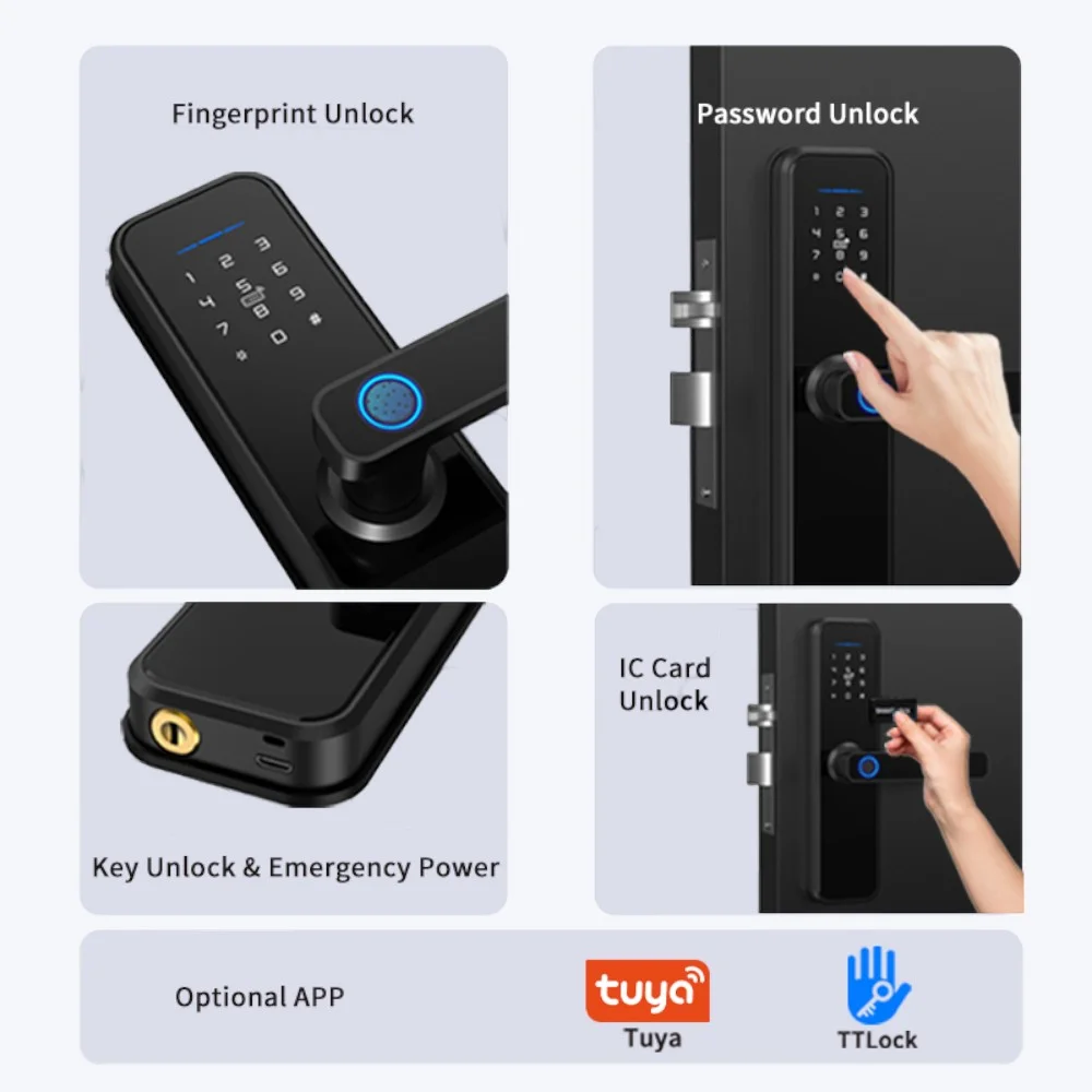 | Access Modes | Keypad, Fingerprint, RFID, App, Key |