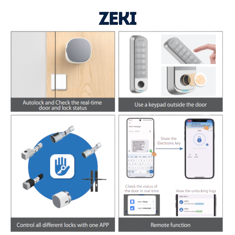 Upgrade your door with the Zeki Bot DLB2, a powerful retrofit smart lock for door that supports app unlocking, keypad access, remote control, and real-time monitoring. Compatible with most door types and includes the required cylinder when needed.